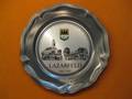 Als äußeres Zeichen des Dankes der Lazarfelder Heimatortsgemeinschaft überreiche ich Ihnen – Herr Bürgermeister Czisch – ein in Zinn geprägtes Bild mit den früheren Lazarfelder Wahrzeichen – der Kirche und dem Gemeindehaus – mit einer persönlichen Widmung und Ihnen Herr Bundesvorsitzender Hans Supritz unseren Dank in flüssiger Form, möge er Ihnen Herr Supritz, helfen, den Ärger, den Sie bei der Verwirklichung mit den Lazarfeldern hatten, herunterspülen.