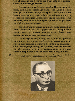 Das „Kommunistische Evangelium“ in der Überschrift und der nach dem Schluss des Mosa Pijade-Zitates angefügte Text stammt wohl von der Tschetnik Führung des Draza Mihajlovic. Die Tschetniks bedienten sich dieses Aufrufes von Mosa Pijade für ihre Propaganda, um das eigene Volk und die Welt vor dem Tito-Kommunismus zu warnen.